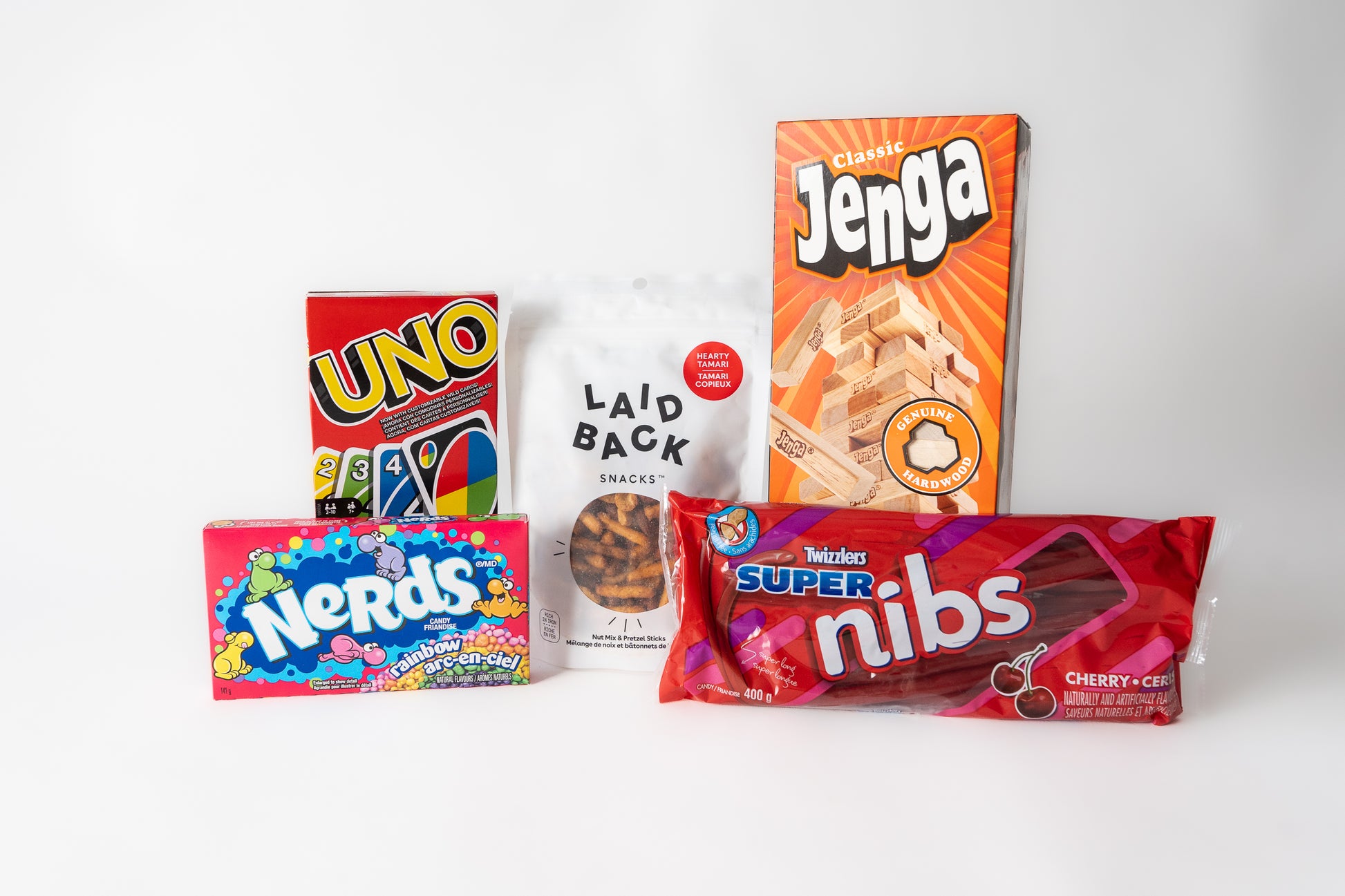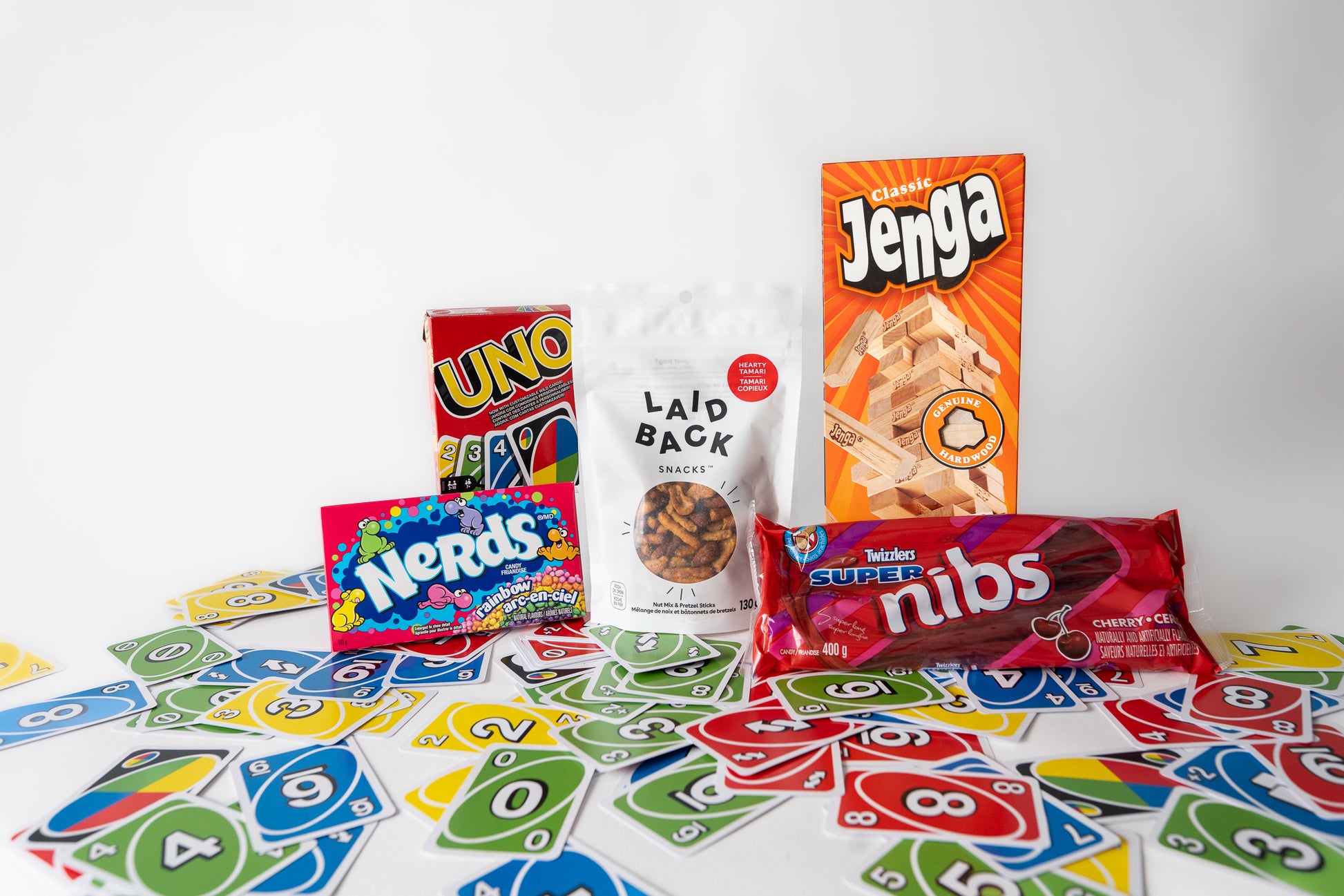 Quality time together with the people you love over games builds so much connection and joy! Whether contagious laughter takes over the table as the Jenga tower topples, or the competitive part of all of us kicks in when we draw +2 pick up card, there's a little kid in all of us. Gift this games night gift box to your neighbour, kids, clients, and anyone who needs to take their mind off the stressors life can bring for a night